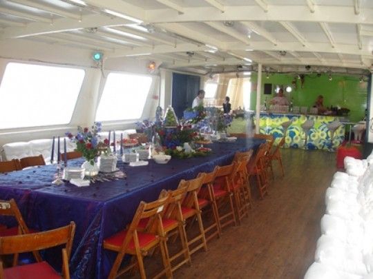 Het schip heeft 1 grote binnenruimte waar de hele groep in kan: feesten en walking diners tot 220 man en zittende diners tot maximaal 120 man.