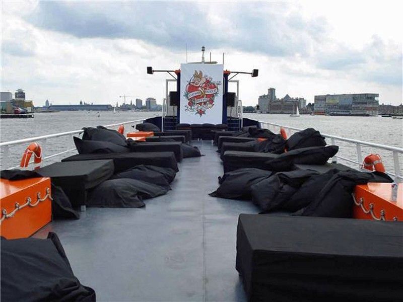 Het schip is uitgerust met een DJ-Booth met professionele pioneer cd spelers, JBL speakers en diverse lichteffecten. Natuurlijk is het ook mogelijk je eigen apparatuur mee te nemen als je dit wenst.Faciliteiten