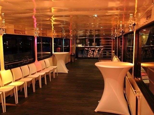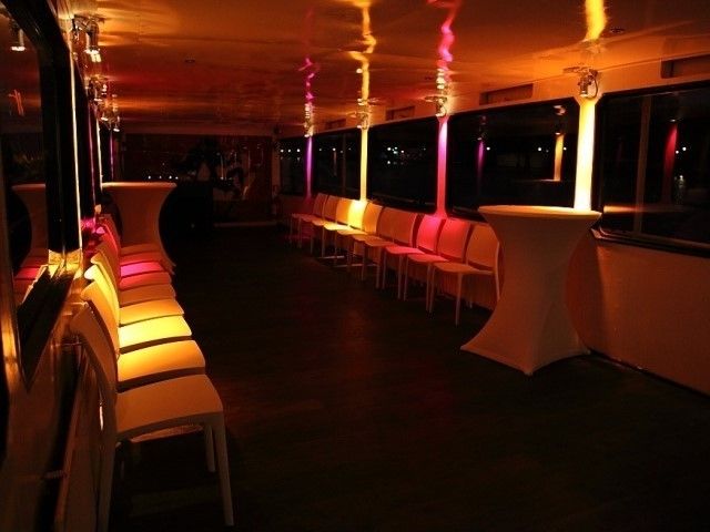 Het schip is uitgerust met een DJ-Booth met proffesionele pioneer cd spelers, JBL speakers en diverse lichteffecten. Natuurlijk is het ook mogelijk je eigen apparatuur mee te nemen als je dit wenst.Faciliteiten