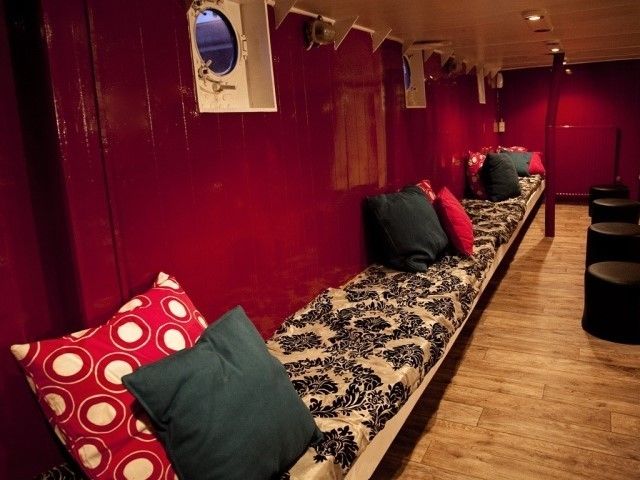 Het schip heeft 1 grote bovenzaal met barfaciliteiten. Beneden in het schip bevindt zich nog een gezellige lounge, waar het heerlijk rustige kletsen is als het feest boven tot zijn hoogtepunt stijgt! Feesten en walking diners tot 100 personen zijn mogelijk. Sitting diners kunnen maximaal tot 45 personen in de grote bovenzaal.