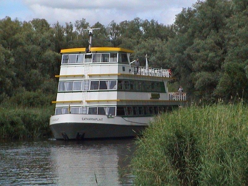 Het partyschip Catharinaplaat: Mede door de geringe diepgang is dit partyschip geschikt om door het Biesbosch-gebied te varen, maar ook daarbuiten is zij goed inzetbaar: Rotterdam met de indrukwekkende skyline ligt immers om de hoek!