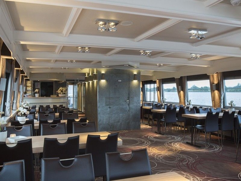 Benedensalon De sfeervolle salon is ingericht met los meubilair en biedt zitplaats aan 125 personen. Ook bevinden zich hier een goed geoutilleerde luxe bar en de toiletgroep.