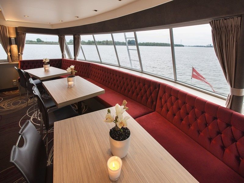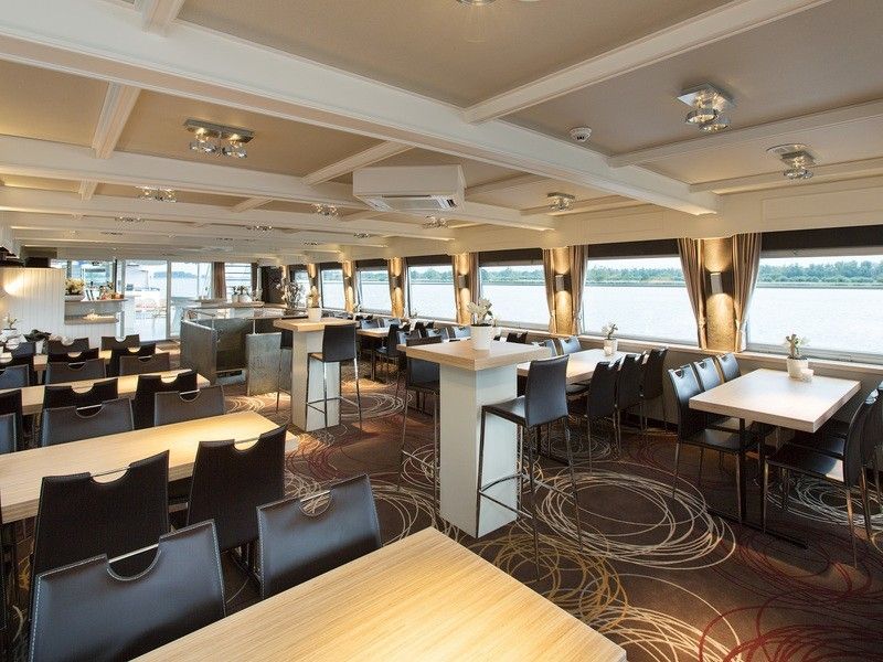 Bovensalon Ook hier vindt u los meubilair, een bar en een toiletgroep. Deze salon biedt zitplaast aan ca. 100 personen. Vanuit deze salon is er toegang tot het achterdek, dat plaats biedt aan 50 personen. Vanaf af dit dek is er toegang tot het panoramadek bovenop het schip.