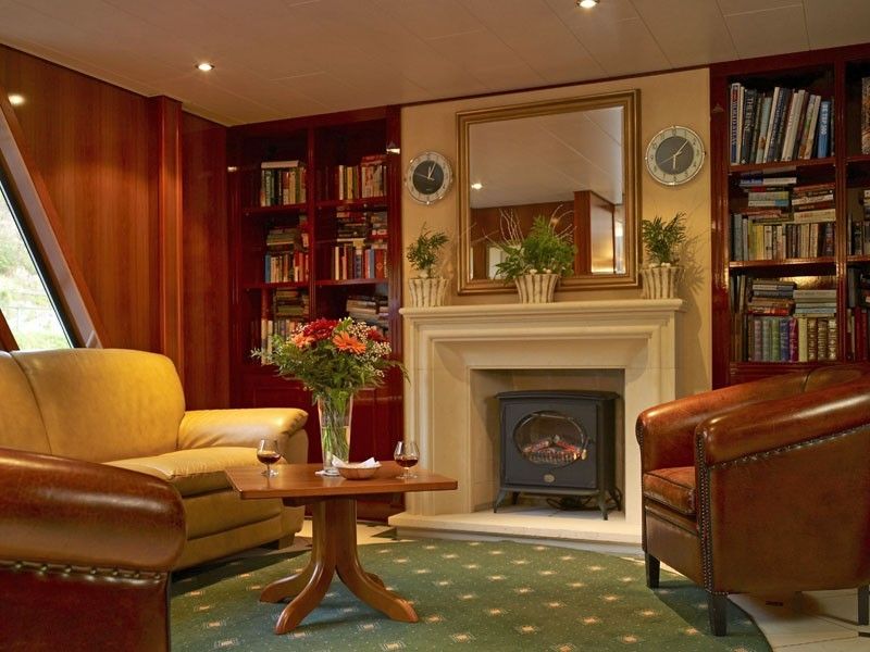 Het bovendek: Op het bovendek (Waaldek) bevindt zich de receptie, de gezellige bibliotheek met open haard en de riante lounge met bar, die zeer sfeervol ingericht is en voorzien van comfortabele leren banken. Bij de receptie bevinden zich enkele plaatsen, waar u van het internet gebruik kunt maken, alsmede de boordshop.