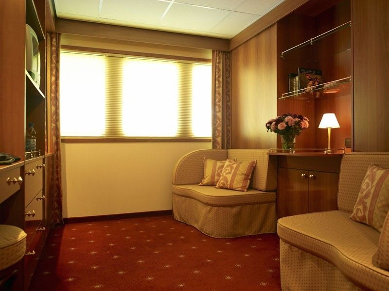 Uw hut: De 64 luxe tweepersoonshutten, verdeeld over twee dekken, zijn ruim en bijzonder stijlvol en comfortabel ingericht. De hutten beschikken over een ruime badkamer en alle gebruikelijke voorzieningen, zoals een kleurentelevisie met video informatie, een radio, een minisafe, een haardroger en een telefoon. Het gehele schip is voorzien van airconditioning en verwarming en in uw hut zijn deze individueel regelbaar.