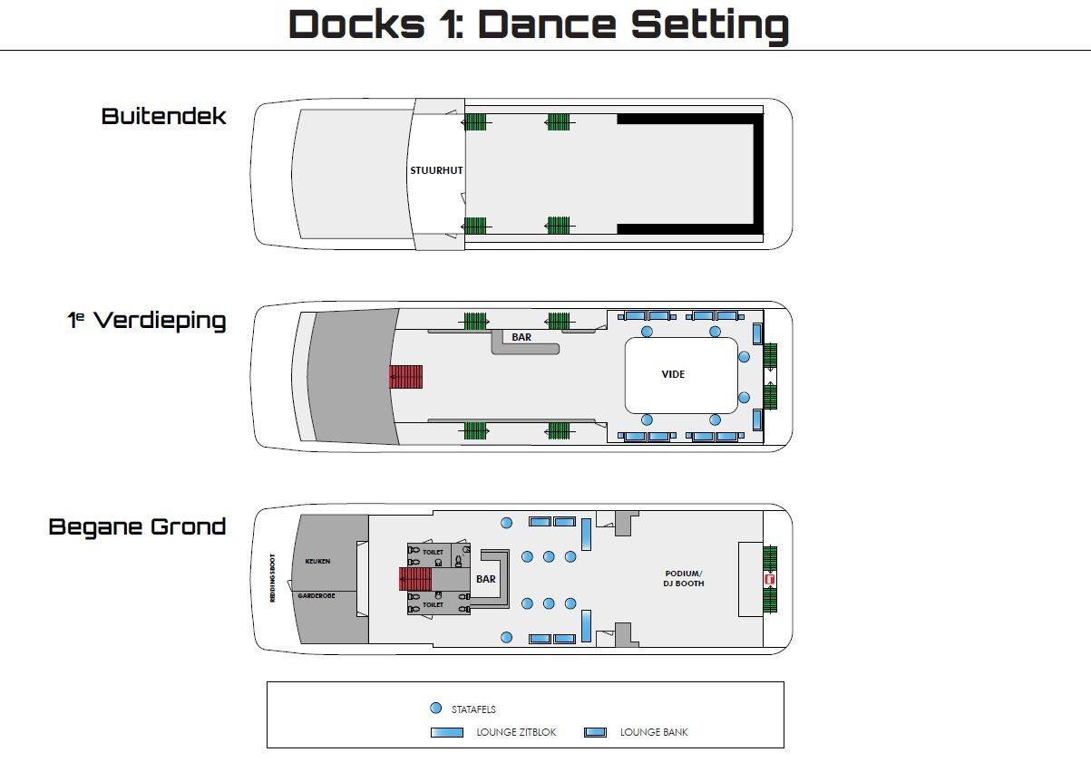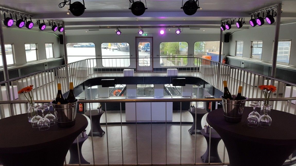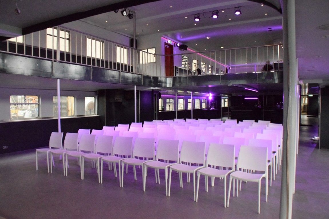 Een stoere evenementenlocatie voor groepen van 150 tot 600 personen. Een flexibele evenementenlocatie voor zakelijke events, borrels, feesten en gala’s. Het schip is uitgerust met professionele DJ apparatuur en barfaciliteiten.
