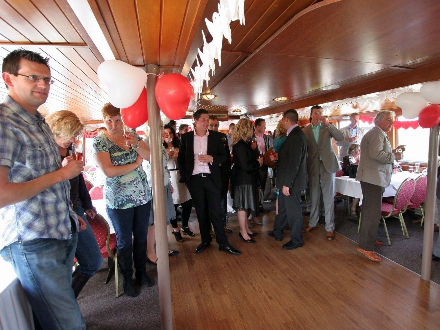 Een mooie boot, inrichting was helemaal sfeervol, niet oubollig waar ik een beetje bang voor was..... Prima banken voor de brede gasten. Bedienende dame was correct. De kok had heerlijk eten klaargemaakt waar iedereen van smulde. Het zag er ook erg mooi uit! Ook de kok was correct. De kapitein was ook correct. Ik bedoel met correct dat ze vriendelijk en professioneel zijn. Geen popiejopie. Ik begeep van hen dat ze ook hadden genoten van het feest. Het was natuurlijk ook prachtig weer, de band speelde fantastisch en iedereen was er en had het enorm naar de zin. Het was een feest waar mijn man en ik, familie en vrienden nog vaak met veel genoegen aan terug zullen denken. Jou wil ik ook bedanken voor de snelle reactie die ik telkens kreeg op mijn vragen.
