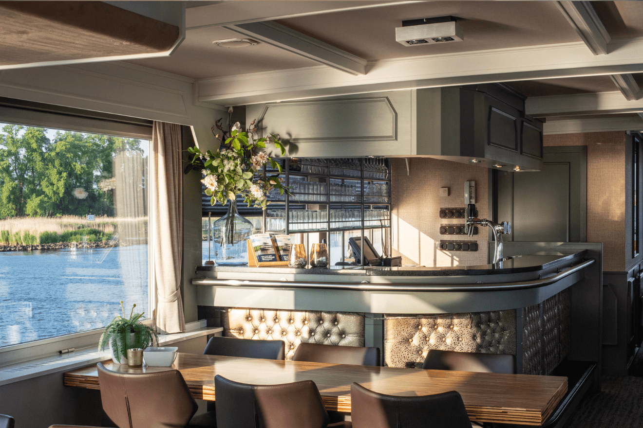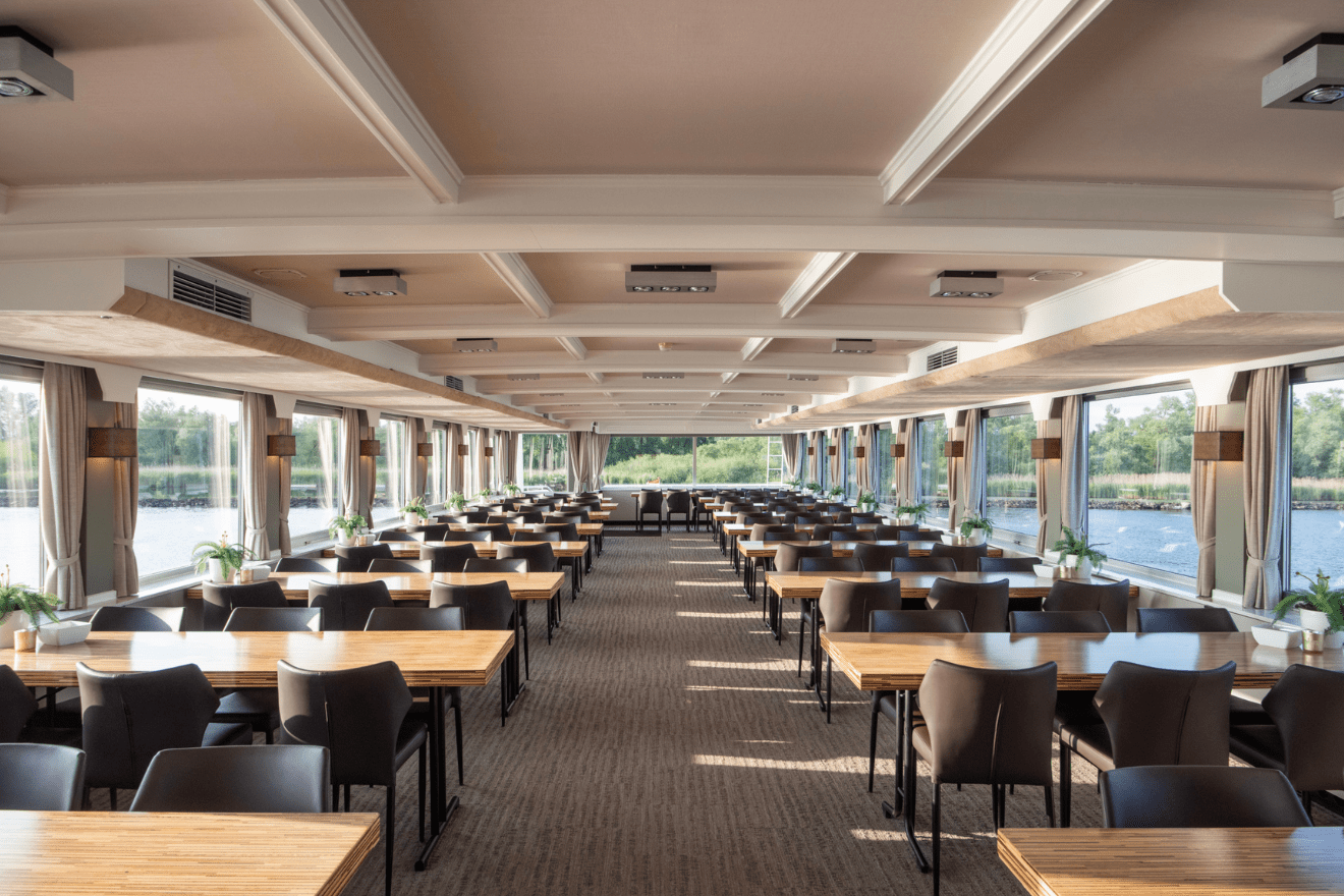 Een mooie boot, inrichting was helemaal sfeervol, niet oubollig waar ik een beetje bang voor was..... Prima banken voor de brede gasten. Bedienende dame was correct. De kok had heerlijk eten klaargemaakt waar iedereen van smulde. Het zag er ook erg mooi uit! Ook de kok was correct. De kapitein was ook correct. Ik bedoel met correct dat ze vriendelijk en professioneel zijn. Geen popiejopie. Ik begeep van hen dat ze ook hadden genoten van het feest. Het was natuurlijk ook prachtig weer, de band speelde fantastisch en iedereen was er en had het enorm naar de zin. Het was een feest waar mijn man en ik, familie en vrienden nog vaak met veel genoegen aan terug zullen denken. Jou wil ik ook bedanken voor de snelle reactie die ik telkens kreeg op mijn vragen.